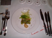 二種のアスパラのゼリー寄せ、フォアグラのピュレ添え